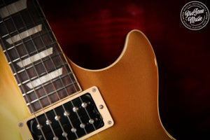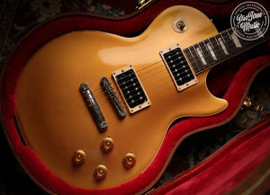 Welcome to Protone Music and here have for sale is another beautiful guitar indeed and this 2023 Gibson USA Les Paul Standard Slash Victoria Gold Top which as you can see is a lovely example which plays and sounds superb.