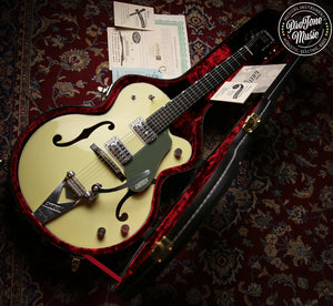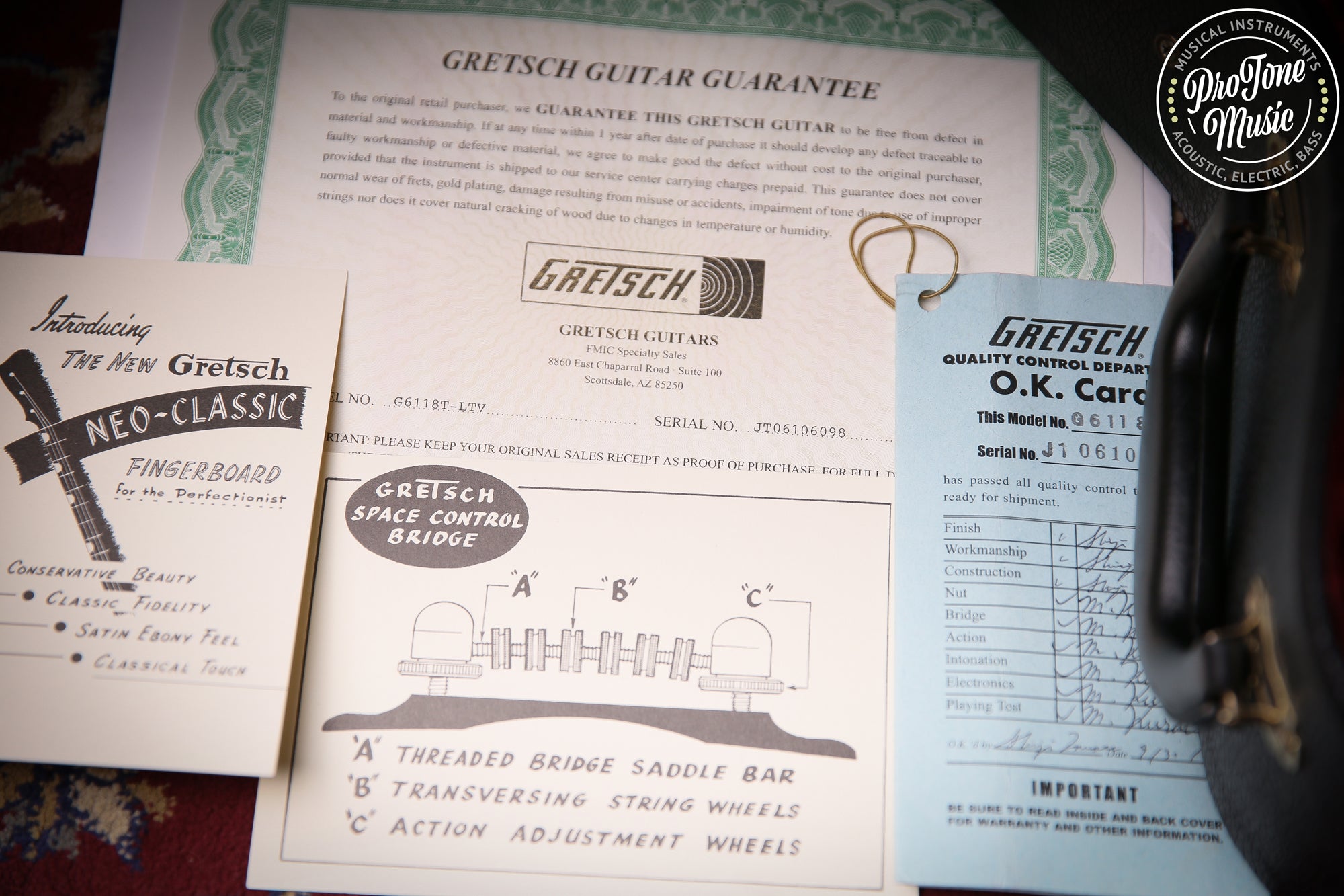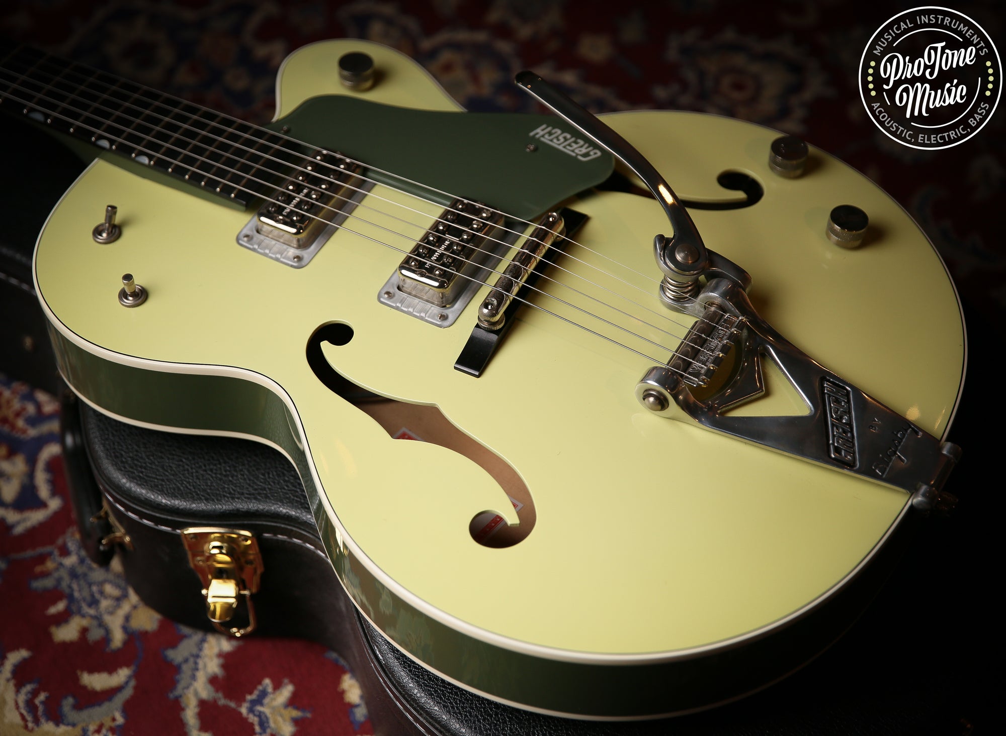 Welcome to Protone Music and here we have for sale is another lovely piece its a 2006 Gretsch G6118T-LTV Anniversary in Two Tone Green finish which as you can see is a lovely example which plays and sounds fantastic.