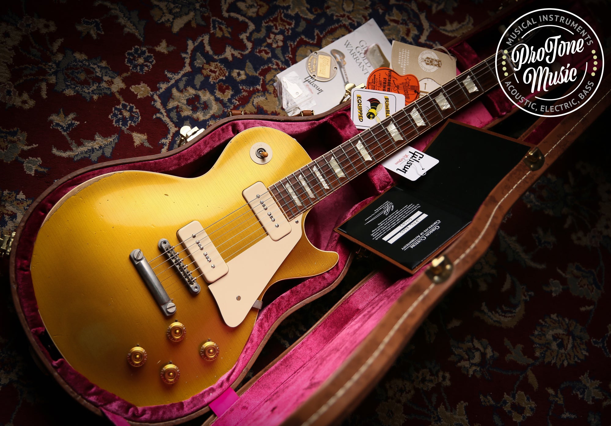 elcome to Protone Music and here we have for sale is another lovely piece its a 2014 Gibson USA Custom Shop LPR6 Aged Reissue Limited Edition Goldtop which as you can see is a stunning example especially with the aged finished as it really looks authentic, in terms of playability and sound its awesome just as you would expect from a custom shop.