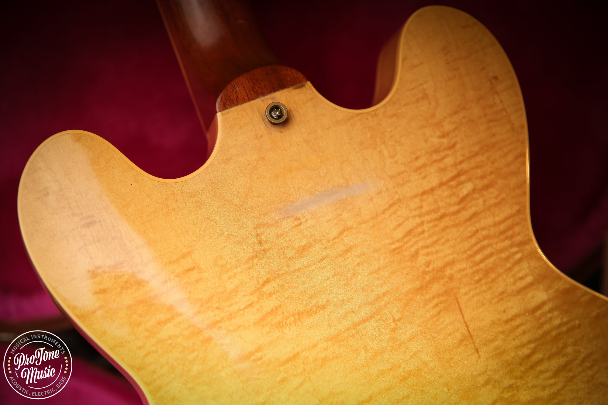 Welcome to Protone Music and here we have for sale is a 1987 Gibson USA ES-335 Natural finish which as you can see is a lovely example which is from a great Gibson period, this one is features a ebony fingerboard which only a few were made like this so it is quite a rare one to come across. As you would expect it plays great it just has that played in early Gibson feel and the pickups have been upgraded to early Tim Mills Bareknuckle hum-buckers which sound fantastic.