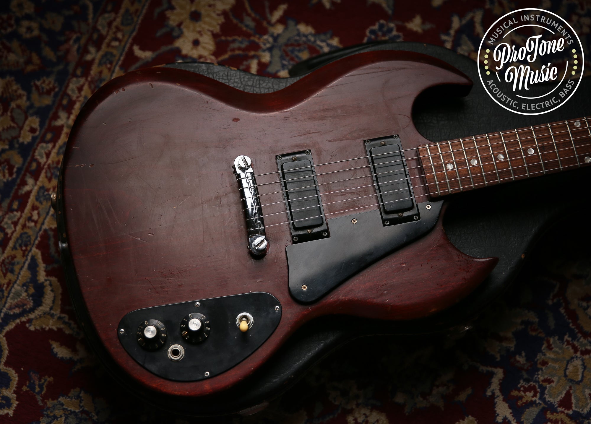 Welcome to Protone Music here we have for sale is a one you dont see very often its a 1972-75 Gibson USA SG-2 which as you can see is a classic from the old Gibson generation it has a great worn in feel and a superb sound to back it up you can definitely hear and feel that classic Gibson era.