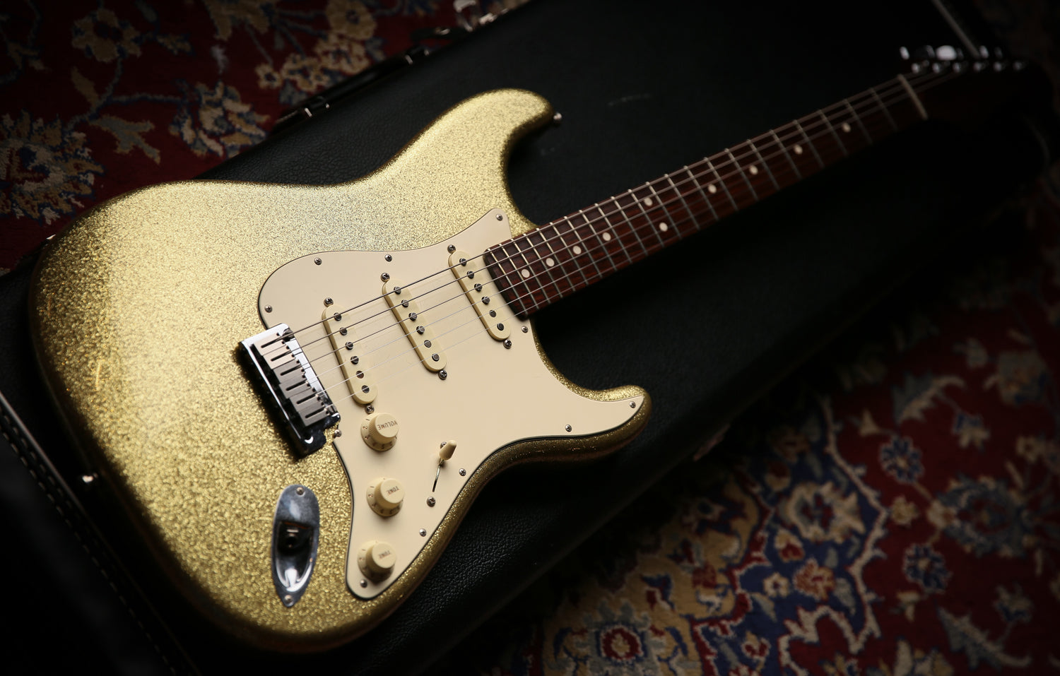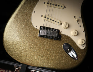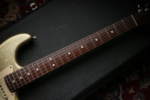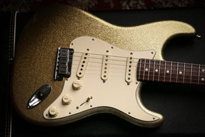 Welcome to Protone Music and here we have for sale from the personal collection a 2013 fender USA Custom Shop Closet Classic Masterbuilt Greg Fessler in Gold Sparkle as you can see it is a stunning example especially as it features a rosewood neck which just feels incredible but also makes the guitar more resonant.
