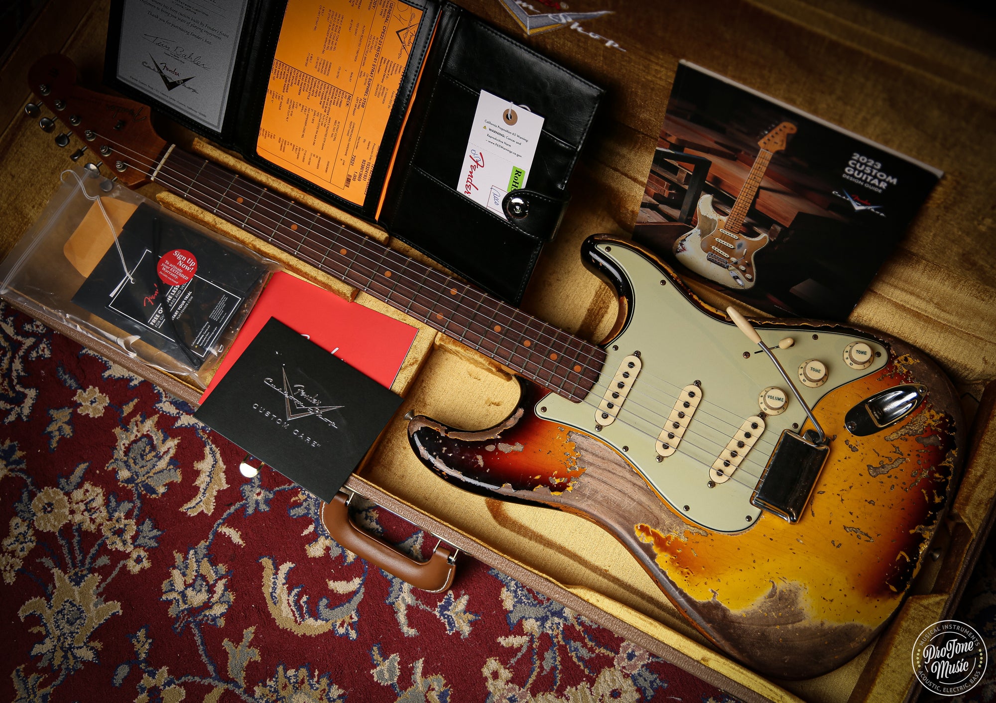 Welcome to Protone Music and here we have for sale is a 2023 Roasted Fender Custom Shop 61' Stratocaster Super Heavy Relic in 3 Tone Sunburst which as you can see is a stunning example and one of the nicest Strats we have ever come across as this just sings and so resonant coming from the roasted neck and body which is a perfect combination.