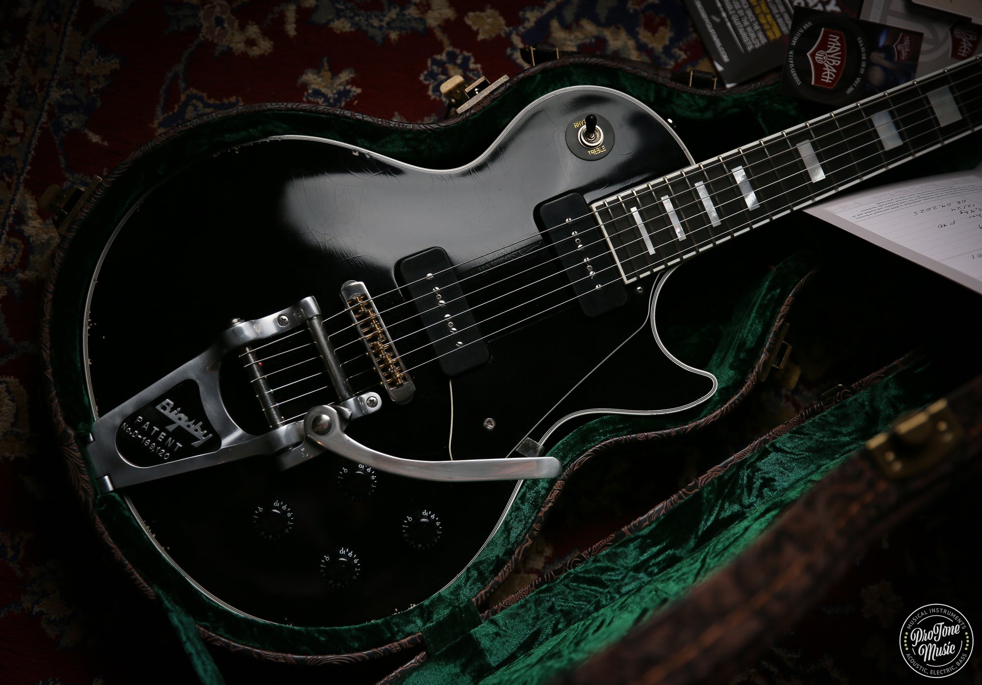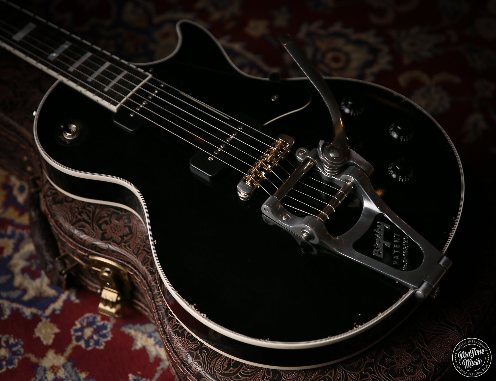 Welcome to ProTone Music and here we have for sale is a New Maybach Lester Custom 54' Bigsby Aged Black Velvet which as you can see is a stunning example, Maybach guitars are one of the most sought after brands on the market as they are just superb from terms of feel and sound and superb value for money.